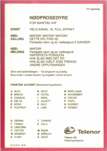 1. Følgende signaler brukt eller vist enten i samband med hverandre eller hver for seg, angir nød og at det trengs hjelp: