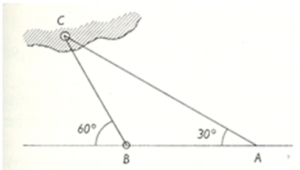 Når vi dobler peilingsvinkelen på baugen får vi en likebent trekant. Utseilt distanse mellom peilingene er lik avstanden ved siste peiling AB = BC. Når vi vet at avstanden BC er lik AB, vil sirkelen rundt C med radius AB være den andre stedlinjen, i tillegg til stedlinjen fra C som følge av siste peiling BC, og OP er bestemt. (Ill.: H. Fjeld)