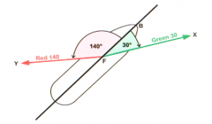 Peiling av X kan benevnes som grønn 30° (SB 30°), eller Rel φ 030°, og Y som rød 140° (BB 140°), eller Rel φ 220°. Hvis Rv k er 045°, vil Rv φ være hhv 075° og 265°.