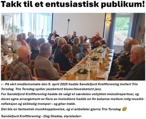 Sandefjord Kreftforenings medlemsmøte 9. april 2025