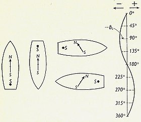 Flyktig magnetisme i loddrett jern lager halvsirkeldeviasjon. (Johnsen og Bryn 1969)
