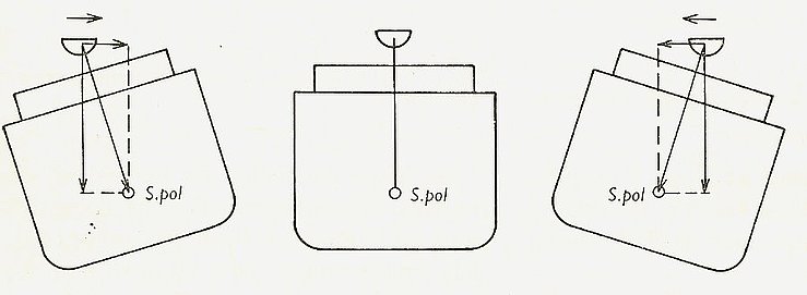 Krengningsdeviasjon oppstår på grunn av den faste polens loddrette komponent. (Johnsen og Bryn 1969)