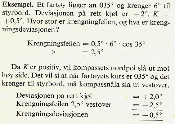 hvor K = krengningskoeffisienten, i = krengningsvinkelen i grader, k = kursen.