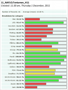Til tentamen i desember går jeg skikkelig i baret. Oppmuntret av de gode resultatene i Quiz F08 og F09 lager jeg en altfor omfattende tentamen til 180 min., og må løfte resultatet i klassen. Det lå an til godt og vel en tredjedel stryk.