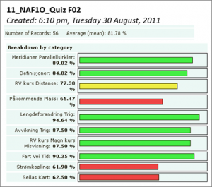 Quizzes are used to give the students experience in solving navigational problems. One quiz must be successfully passed before the student is given access to the next quiz.