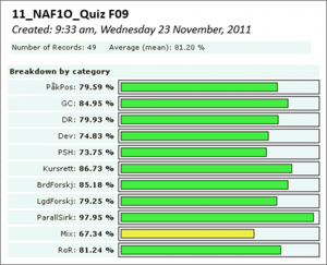1 – En quiz er en betegnelse brukt om mengdetrening i oppgaveløsing. Inntil 40 oppgaver gis fra temaer som er belyst siden forrige quiz, og hentes fra en bank som består av inntil 250 oppgaver.