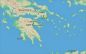 Den mykenske sivilisasjonen ble utviklet fra ca. 1600 fvt. Mykene lå innerst ved Peloponneshalvøya, på sørsiden av Korintbukten i Hellas.