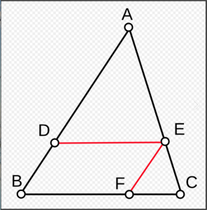 Figuren viser at når en gitt trekant ABC skjæres av en linje parallell med en av sidene i trekanten, så vil det dannes en kongruent trekant.