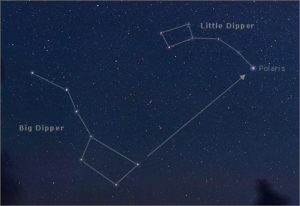 Dersom vi forlenger avstanden fra Merak til Dubhe ca. fem ganger nordover, kommer vi til Stella Polaris/Polaris, også kalt Nordstjernen/Polarstjernen.