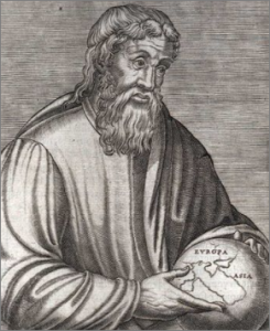 Claudios Ptolemaios, antagelig født i byen Ptolemais Hermiou i den egyptiske provinsen Thebais (ca. år 90-168 evt.), gresk borger av Egypt under romersk styre. Han var geograf, kartograf, matematiker og astronom i Alexandria mellom år 125 og 160. På denne tiden var Alexandria fortsatt verdens ledende videnskapelige senter. Her arbeidet de fremste videnskapsmenn, her lå biblioteket med den kjente verdens største samling av antikke bøker, og datidens fremste karteksperter arbeidet i Alexandria.