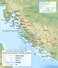 Liburnia, nord for Dalmatia, kjent for sin piratvirksomhet i de siste århundre fvt.