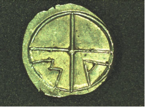 Øverste foto: Nederst til høyre vises en liten barlind mellom en stor barlind og et solhjul der vi skimter noe av M i MA. Øverst til venstre Pytheas signatur Priamos Pytheas, pi pi. Barlinden er eburonernes stammetre, stammens symbol. Phyteas satte Massalias merke på landområdet og tok det i besittelse sammen med eburoner fra Gallia, som han skal ha inngått forbund med. (Gihle Raddum)